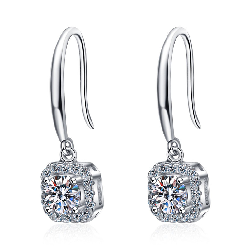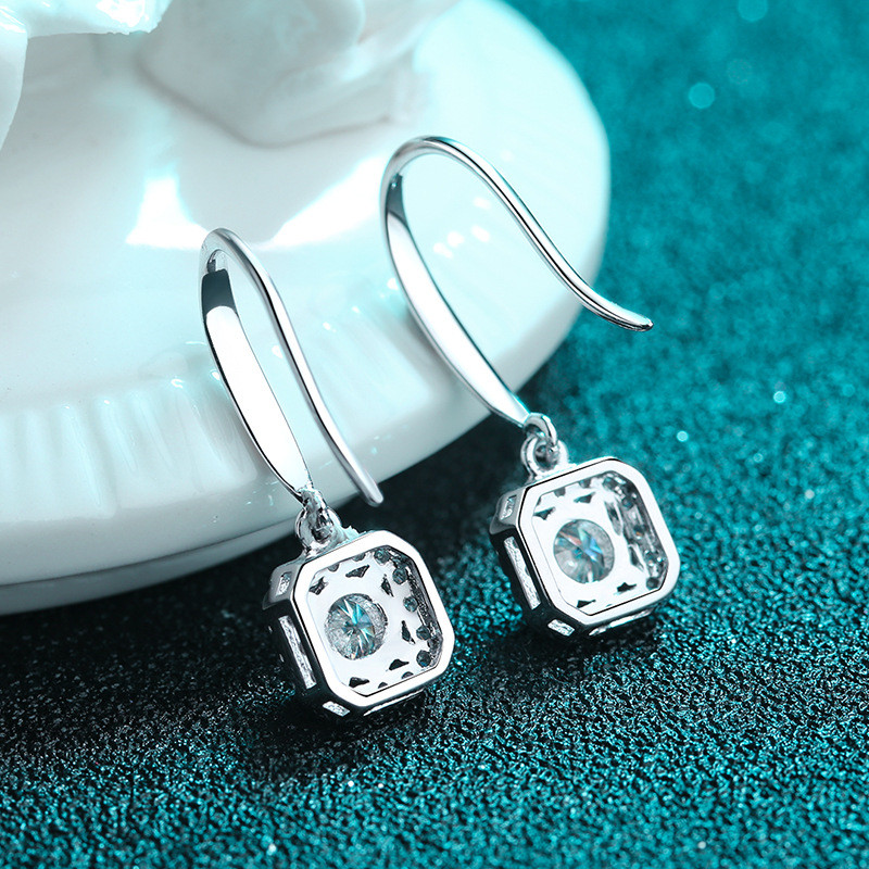 1 Carat Brilliant Cut Diamond D Color Moissanite Cushion Shape Drop Earrings