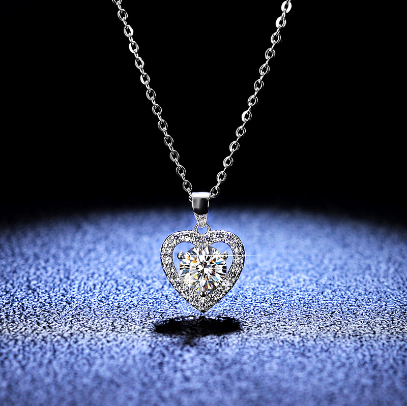 1 Carat D Color Moissanite Heart Shape Pendant Necklace Gemstone Jewelry