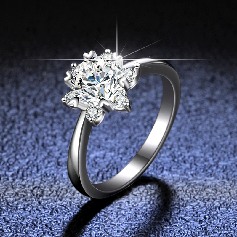 1 Carat D Color Moissanite Romantic Snowflake Shape Ring Brilliant Cut
