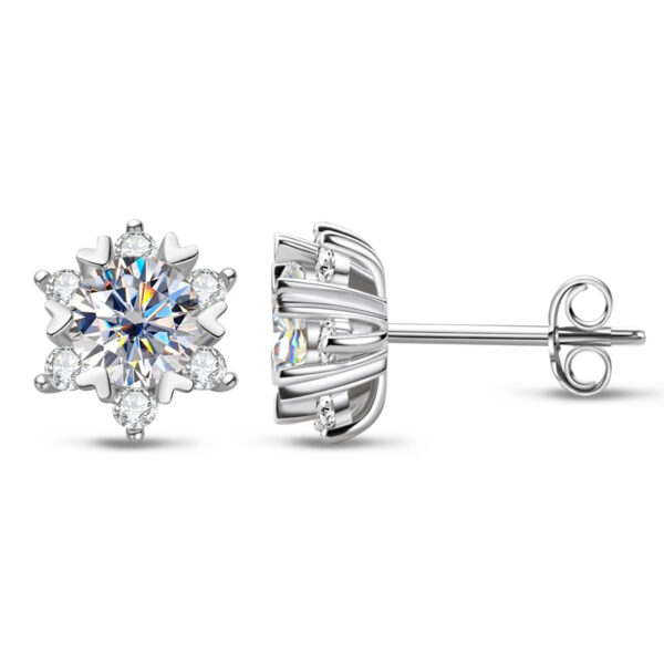925 Sterling Silver 0.8 Carat Moissanite Diamond Ear Stud Sunflower Round