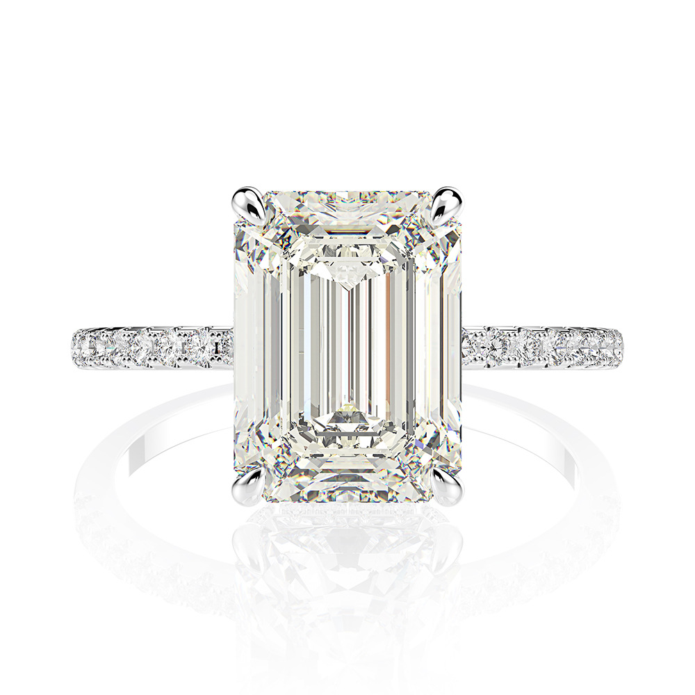 925 Sterling Silver 18k Gold Plated emerald cut CZ diamond ring
