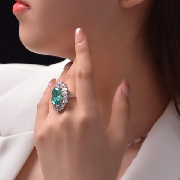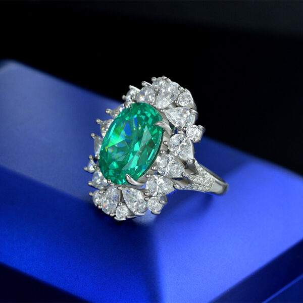 925 Sterling Silver Luxury Jewelry Latest Design Radiant Oval Cut 12*16mm Paraiba Green Synthetic Gem Stones Ring