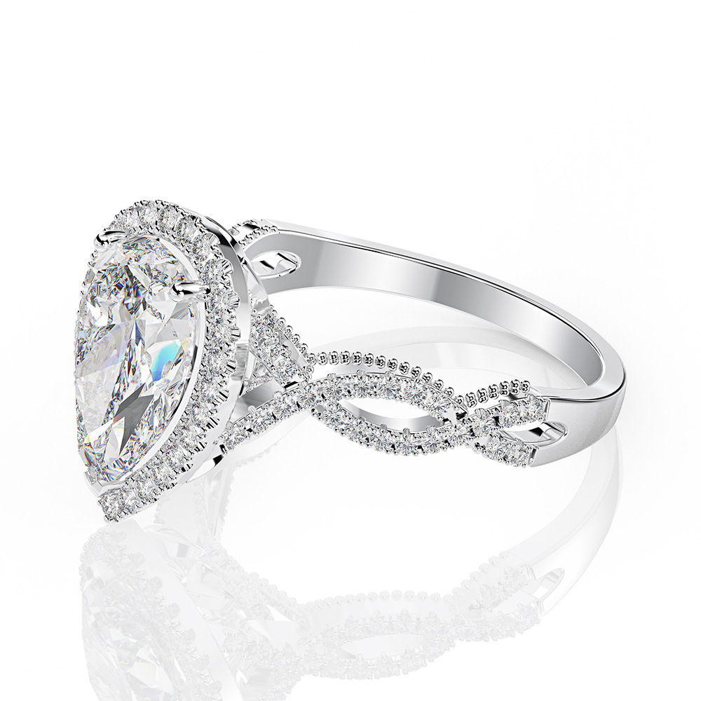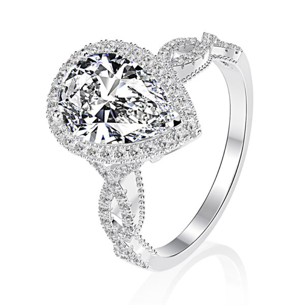 925 sterling silver trendy pave drop shape diamond ring