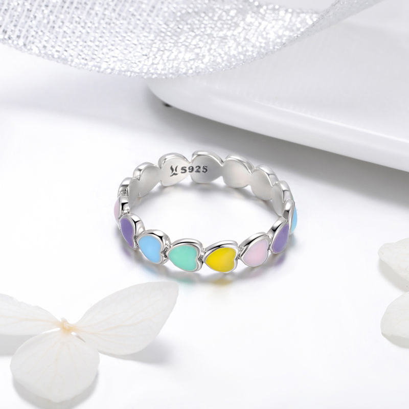 Colorful Eenamel Heart Rainbow 925 Sterling Silver Ring
