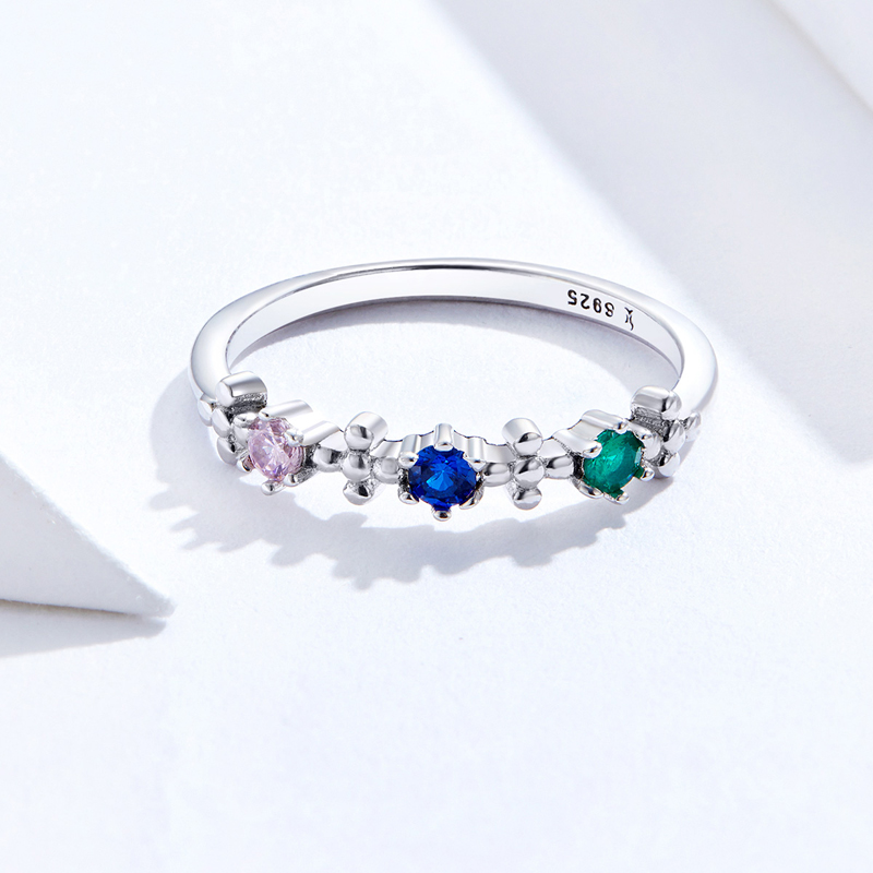 925 Sterling silver colorful zircon Personalized Ladies Ring
