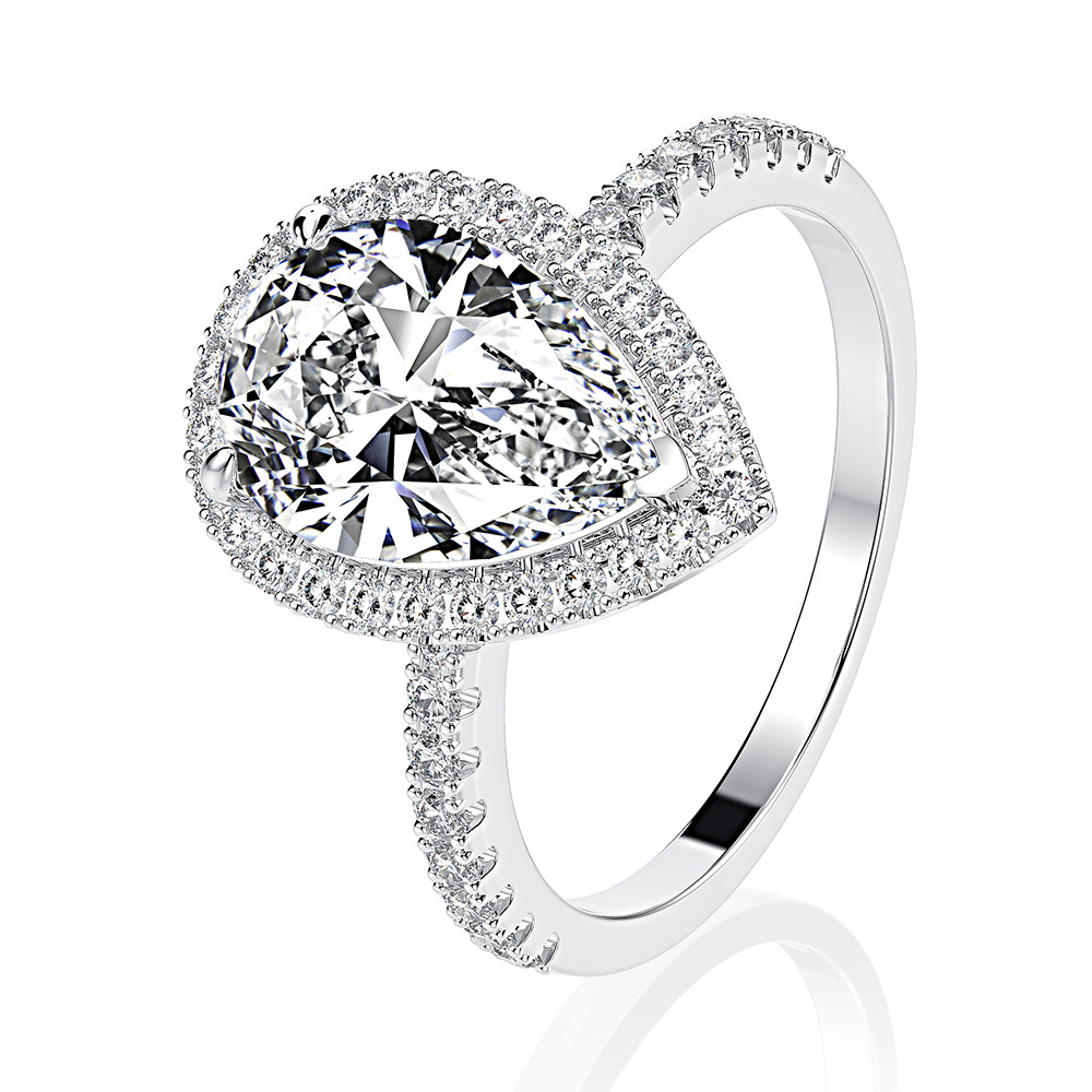 Engagement Ring Pear Shape 925 Sterling Silver 7 Carat Cubic Zirconia
