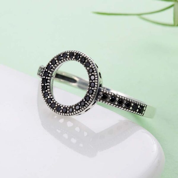 Fashion 925 silver hollow Round Diamond Circle Wedding ring for women Adjustable Open Rings