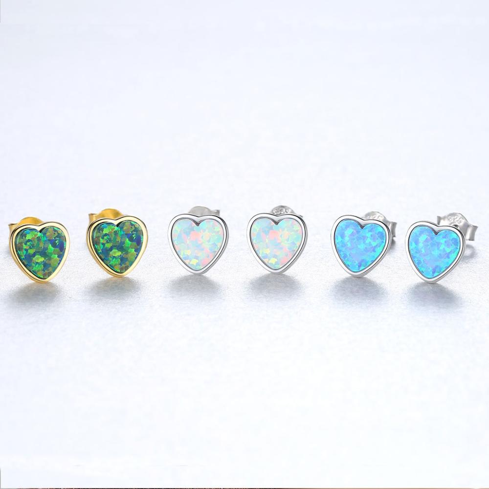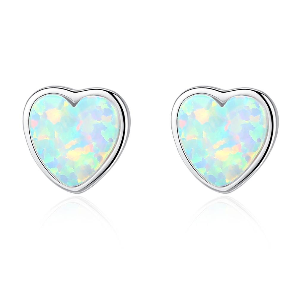 New 925 Sterling Silver Heart Shaped Opal Earrings