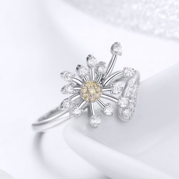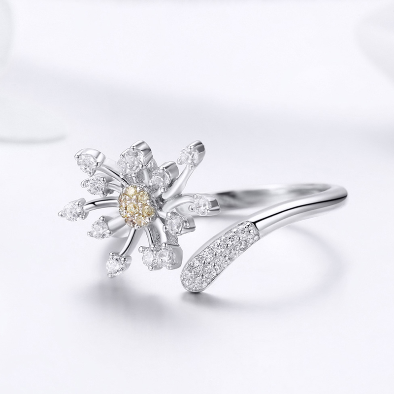 Opening Adjustable 925 Sterling Silver Flower Diamond Ring