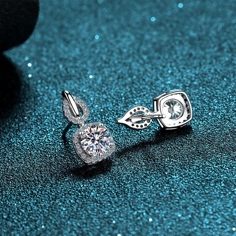 1 Carat Brilliant Cut Diamond D Color Moissanite Cushion Shape Drop Earrings