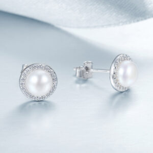 Fine Freshwater pearl/Zircon Pierced Earrings 925 Sterling Silver